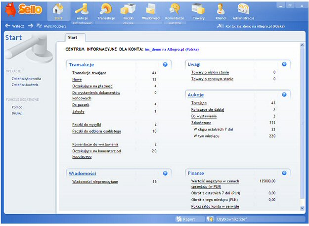 Sello to nowoczesny system stworzony z myślą o tych, którzy sprzedają towary w serwisach aukcyjnych i poszukują wszechstronnego, a jednocześnie prostego narzędzia do obsługi aukcji internetowych. Program komunikuje się z serwisem Allegro.pl i eBay.pl oraz ich zagranicznymi odpowiednikami wspierając sprzedawcę na wszystkich etapach transakcji.